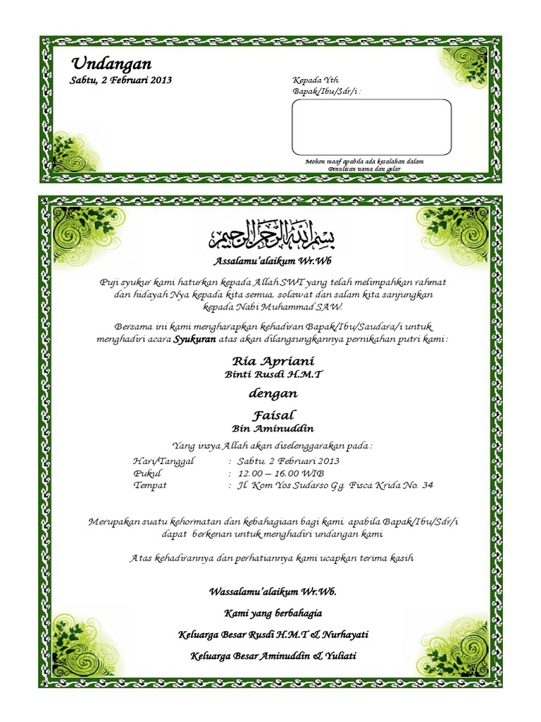 √ 30+ Format Undangan Pernikahan (BENTUK WORD, DOWNLOAD ... from penganten.com Contoh surat undangan syukuran pernikahan. Undangan pernikahan ini terlihat sangat bagus dan mahal, tetapi sangat mudah dibuat sendiri! Mp10c undangan softcover adat batak cetak fullcolor kertas ivory/art carton 260gr ukuran total 39 x 16 cm ukuran lipat 15 x 16 cm. Pernikahan memang salah satu momen yang dapat menguras emosi terutama kedua calon mempelai. Download format undangan pernikahan dengan berbagai model serta karakteristik format undangan pernikahan yang unik serta bervariatif tentu saja inilah yang kemudian dapat memberikan infspirasi. Format surat undangan tahlil sederhana 40 hari, 100 hari, haul, mendak, dll word bisa diedit download juga koleksi undangan yang lain seperti undangan pernikahan, khitanan, syukuran, dll. Akan tetapi jika segalanya memang memungkinkan, kenapa tidak memberikan yang terbaik? Jadi, anda bisa digunakan untuk keperluan anda dalam mencetaknya.